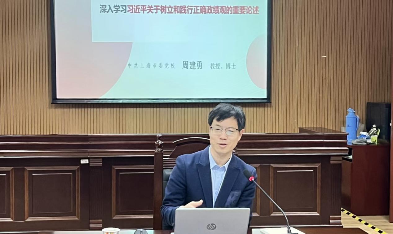 为深入贯彻落实党中央统一部署,推动党员干部深刻把握正确政绩观内涵要求,4月16日下午,人文学院党委特邀中共上海市委党校周建勇教授作专题辅导报告,学院领导班子、全体党支部书记及师生党员代表参加学习。本次报告由人文学院党委书记韩哲宇主持。